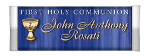 Celebrate the First Holy Communion with a customized candy bar cover featuring a gold chalice and gold lettering. Fully customizable for Hershey bars 1.55oz or larger.